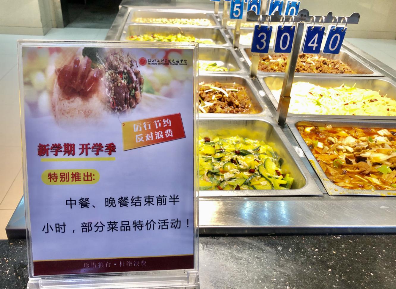 食堂作为把控浪费的“主阵地“,将厉行节约的措施精细到粒粒黍米、小小餐桌。食堂推出“两毛钱米饭”,同时提供3毛、4毛、5毛等不同需求、份量的米饭;精心推出了各式精品小份菜和打烊前半小时内菜品特价活动;倡导环保意识,自带餐盒打包就餐的师生更能享受到每份0.2元的优惠,减少一次性餐具使用。此外,食堂还配有督察员,引导学生按需点餐,做到光盘。“超爱食堂的‘精品小份菜’,适量不贵,不用担心吃不完造成浪费了,不仅选择更多,价钱还划算!”视觉传达1901班周凯莉同记者说道。
