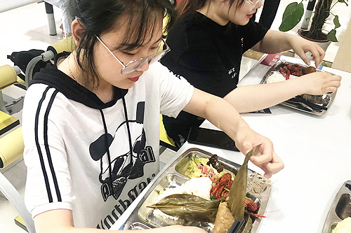 “粽子是中国历史沉淀十分深厚的传统食品,不仅是舌尖上的美味,更是中华民族难以割舍的温馨,是对屈原的纪念,也是对历史的怀念。它不单有着节日的特殊寓意,也含有极高的营养价值。”在端午节这个中华民族的传统节日里,能够收到学院食堂的关怀与祝福,中语2005班的汤晨凯表示十分感动。