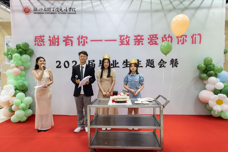 红烧大虾、葱烧排骨、餐后水果……“红毯礼”结束后,毕业生带着喜悦来到群贤楼餐厅,一边享受学院准备的“惊喜晚餐”,一边与好友谈论即将奔赴的“远方”。“很感谢学院组织的这次毕业聚餐,很有意义。这可能是我们最后一次坐在一起,吃着食堂好吃的饭菜了,温馨又感到幸福。”视传1902郑思悦说道。在这特殊的日子,学院还特地为今天过生日的两位毕业生准备了“生日惊喜”,在一声声生日祝福和掌声中,志愿者们送上了精心准备的生日蛋糕。“很惊喜,没想到可以与这么多人一起过生日,感谢学院给予的满满温暖与关怀。”法学1904司肖雨感慨道。