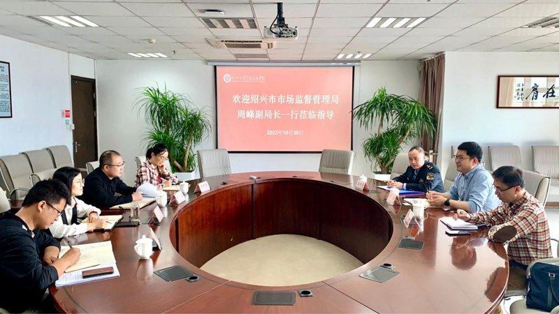 10月30日上午,绍兴市市场监督管理局副局长周峰一行来院调研食堂工作,学院副院长沈玮、资产经营公司相关负责人陪同调研。