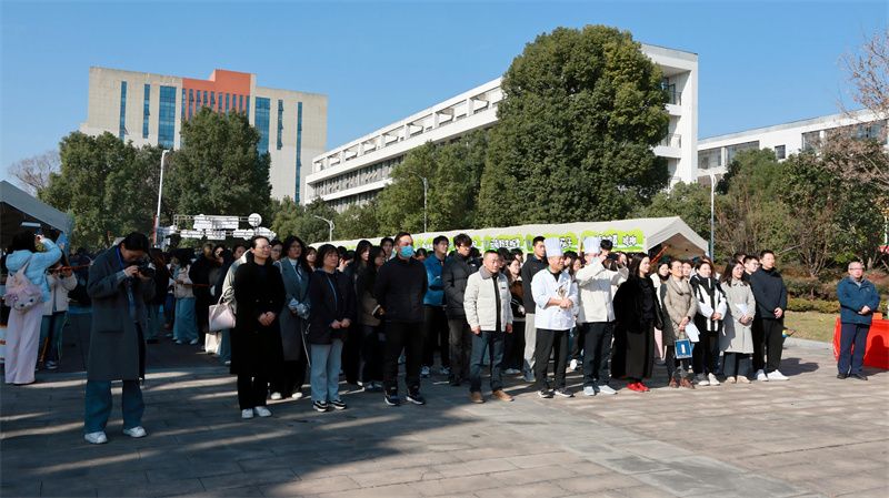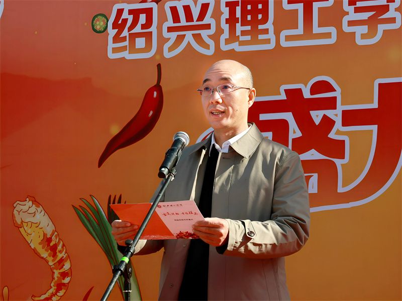 12月9日上午,绍兴理工学院首届“舌尖越韵,味暖理工”美食节在国际文化交流中心北侧广场举行。副校长王华锋出席开幕式并致辞,后勤管理与基建处相关负责人及师生、餐饮商户、食堂员工代表参加,开幕式由资产经营公司相关负责人主持。