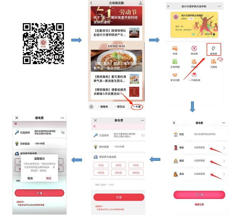 6月3日前,请毕业生通过“元培微后勤”公众号 → 一卡通 → 缴电费 → 输入寝室的楼栋、楼层、房间信息提前查询、缴清欠款,并预交适量的寝室电费,避免寝室电费欠费影响离校手续的正常办理。